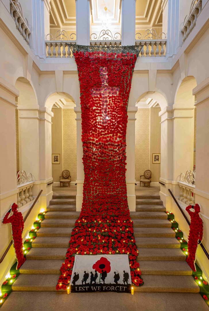 They worked extremely hard to fashion the poppies from crepe paper, and it cascaded down the main staircase to stunning effect.